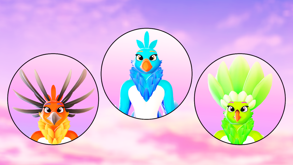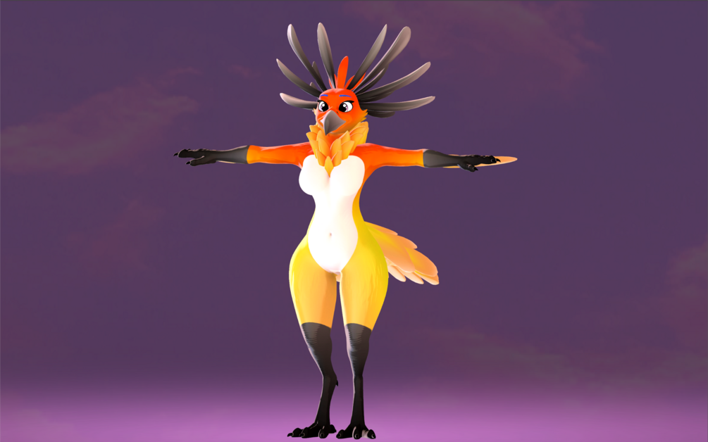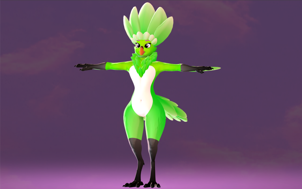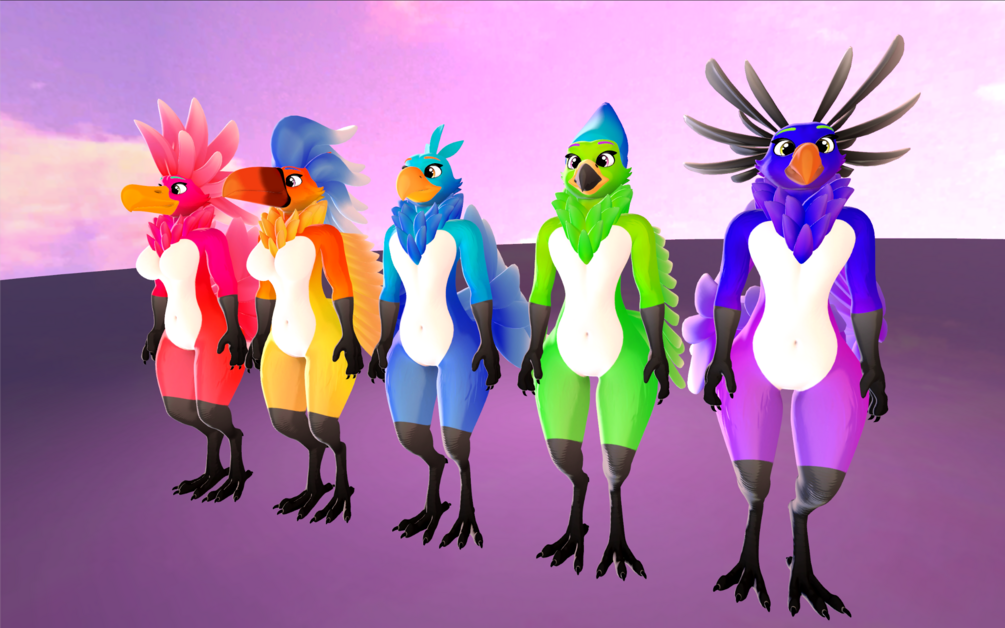 This is the VRChat avatar UnityPackage, prepared for upload! Features gestures with facial expressions, multiple options for wings and beaks, and custom emotes. Also included is the Blend, Substance, VRM, and a customizable PSD (texture)!